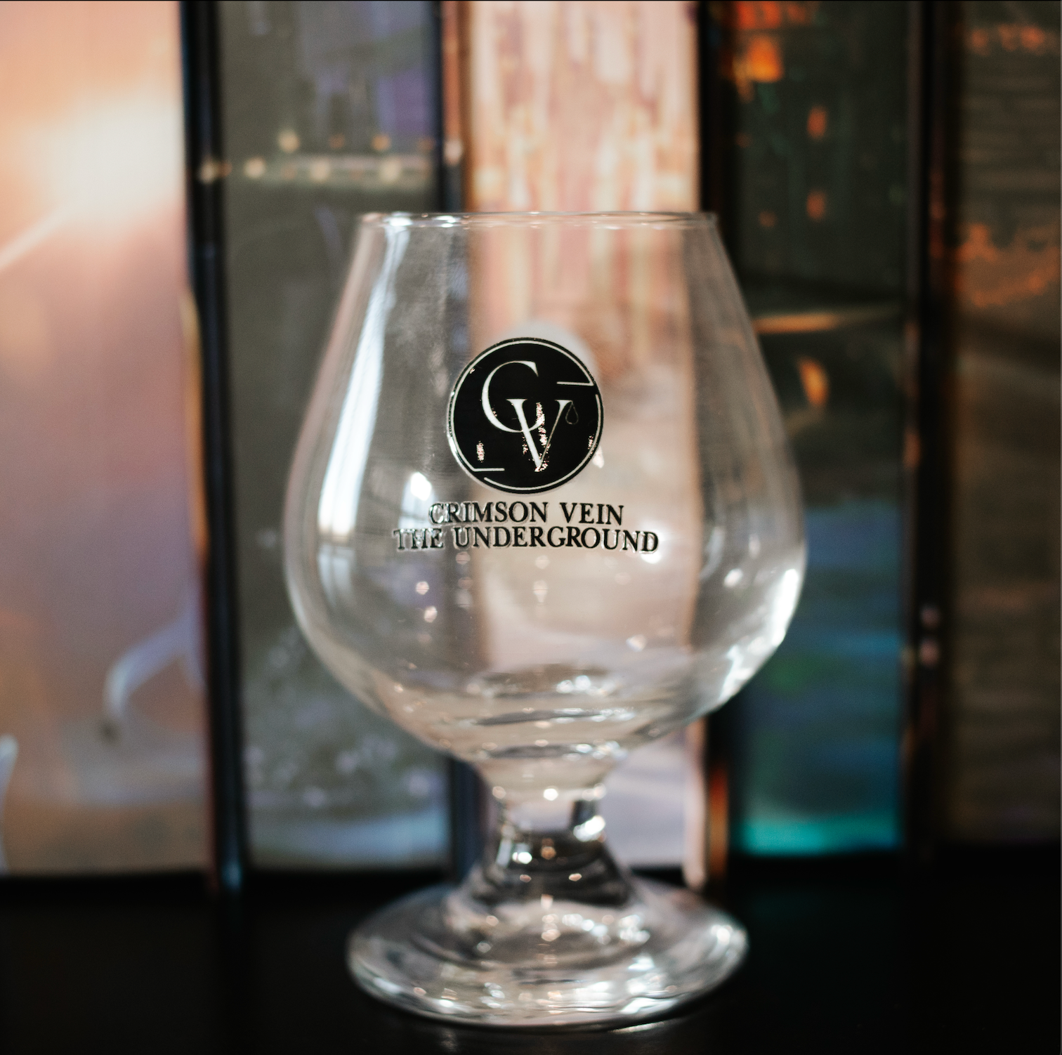 11 oz Brandy Glass with Crimson Vein logo on both sides.