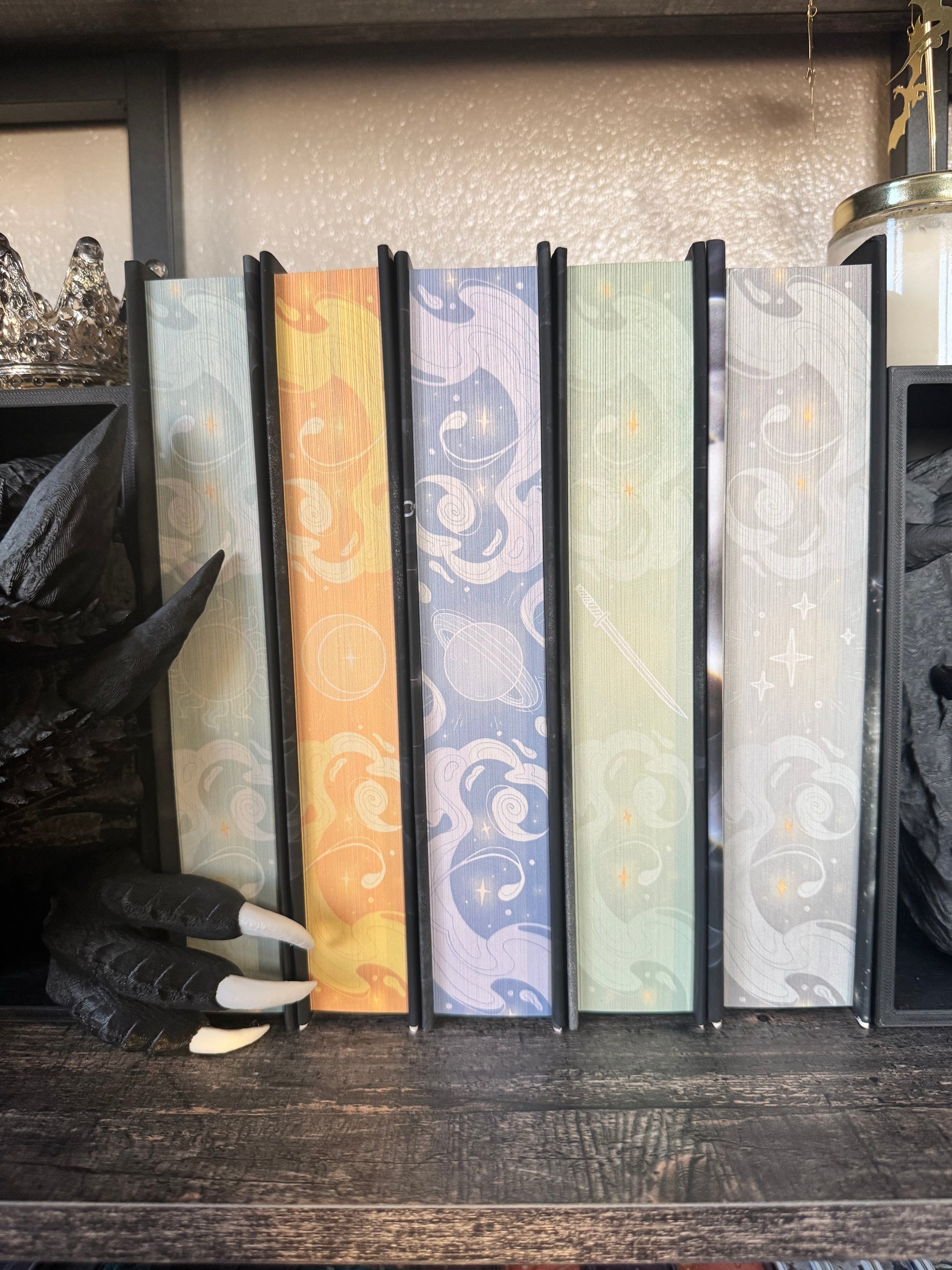 All five books and two novellas, these exclusives are only available from Melissa. The hardcovers feature a custom hard case and edge design by Fen Inkwright, foiled typography on the dust jacket and stamped quotes. The paperback novellas features foiled typography and stamped quotes. All the books come with extra swag and are hand-signed by Melissa.